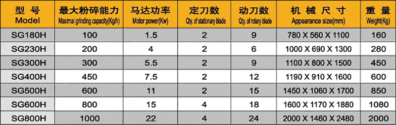SG 靜音粉碎機,適用于粉碎各種塑料材料,包括注射成型,吹塑成型及廢料的集中回收。